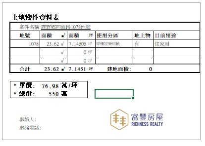 土地坪數:23.62坪 (78.08m²)